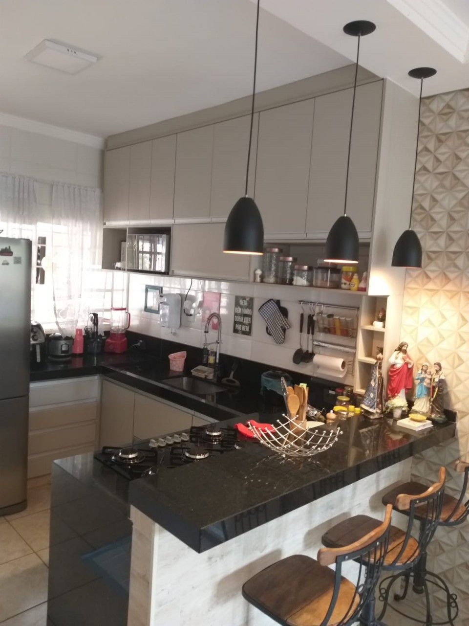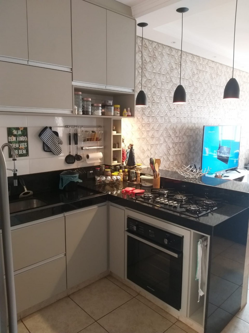 Casa: 02 dormitórios, cozinha c/armário, cooktop e forno, piso frio,