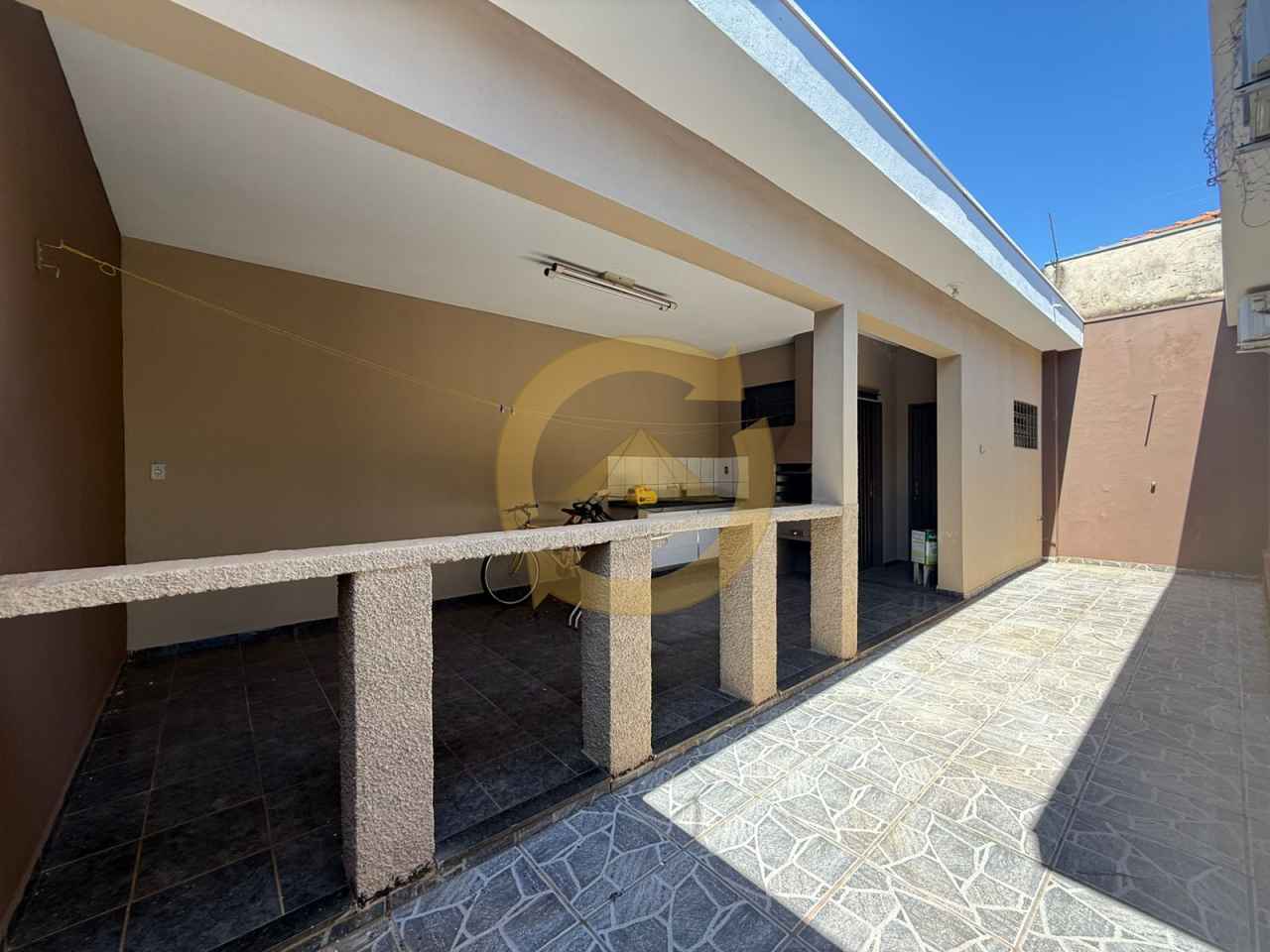 Casa: 03 dormitórios (sendo 01 suíte ), armários, claraboia, sala, sala de jantar, cozinha c/armários, 01 wc social, piso frio, lavanderia, quintal, churrasqueira, wc. externo, garagem 04 vagas e portão eletrônico.