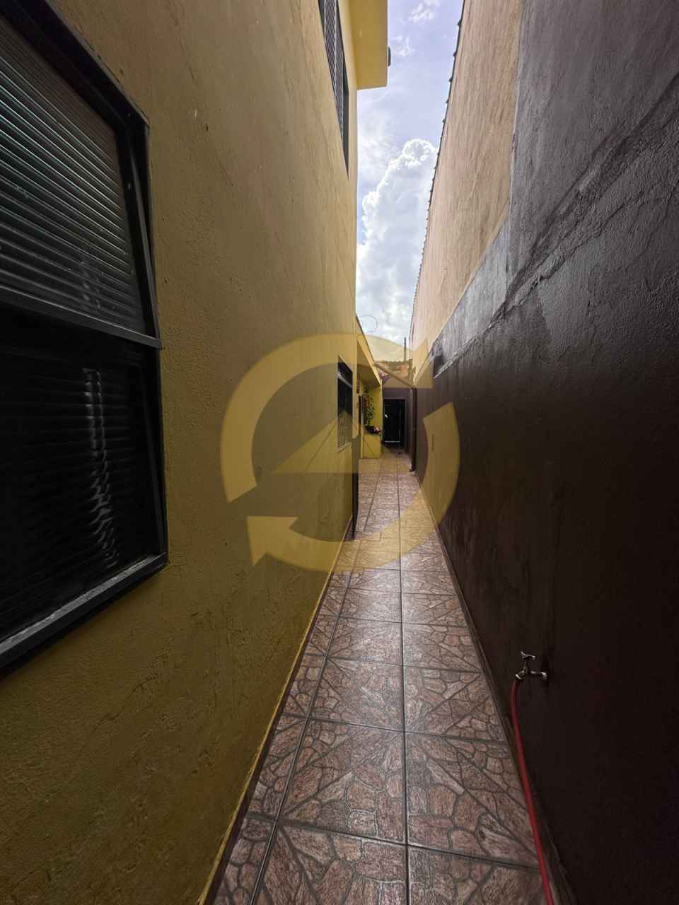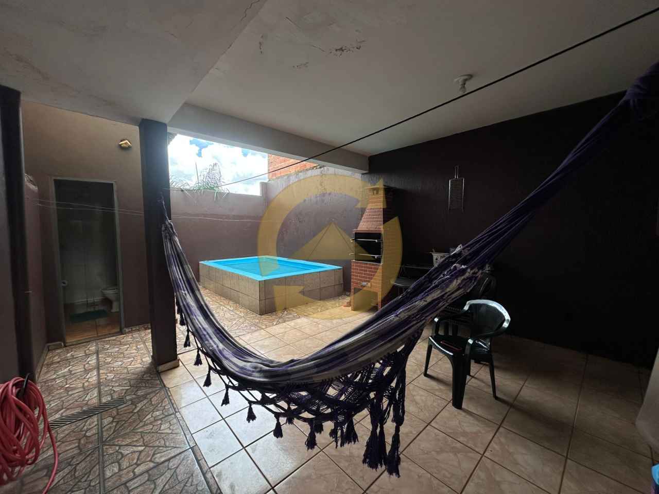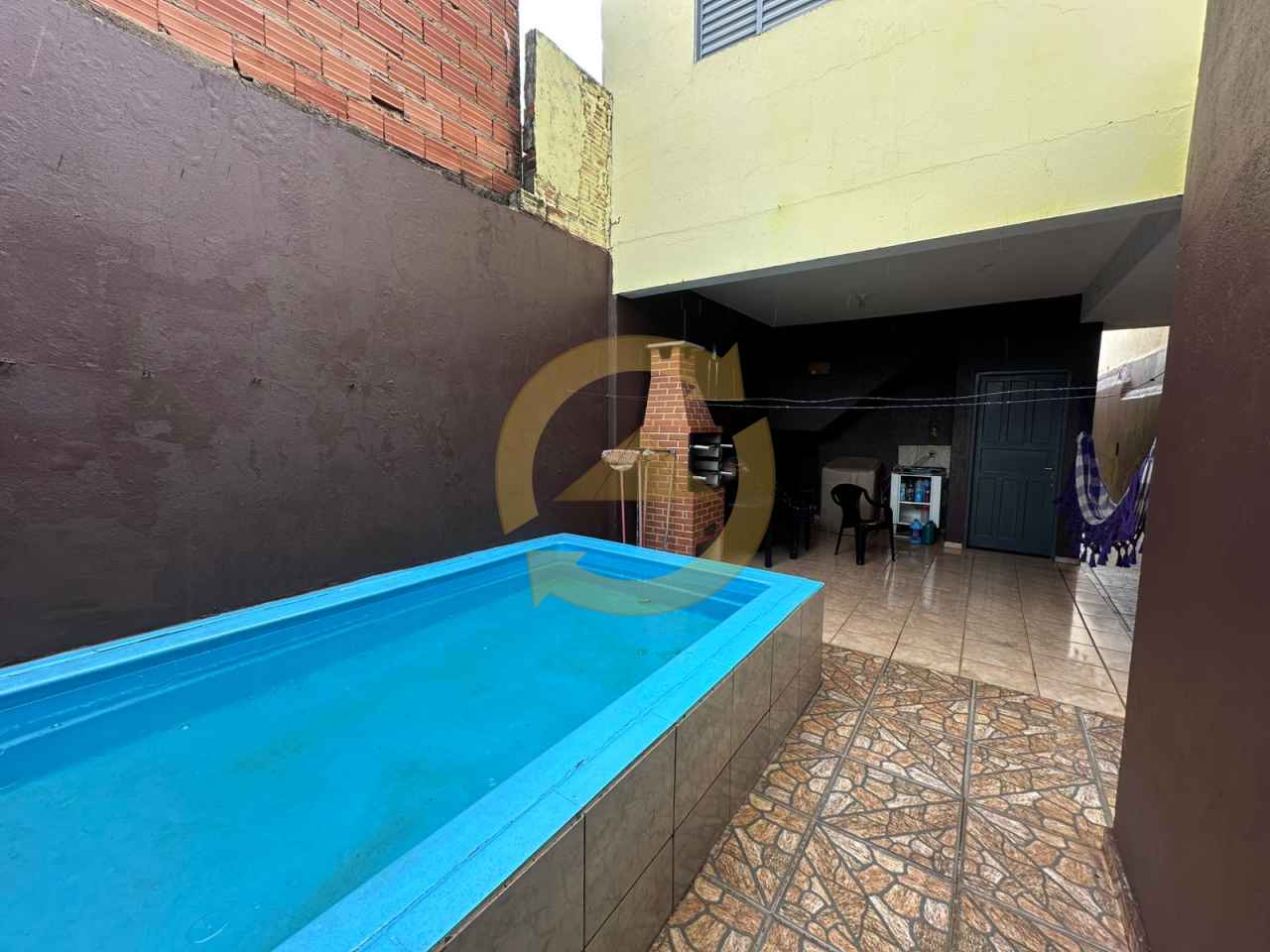 Sobrado: 03 dormitórios (sendo uma suíte), sala, cozinha, 02 wc social, piso frio, escada, lavanderia, área de churrasco, piscina, garagem 02 vagas e portão eletrônico.