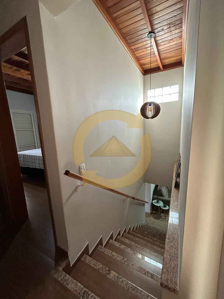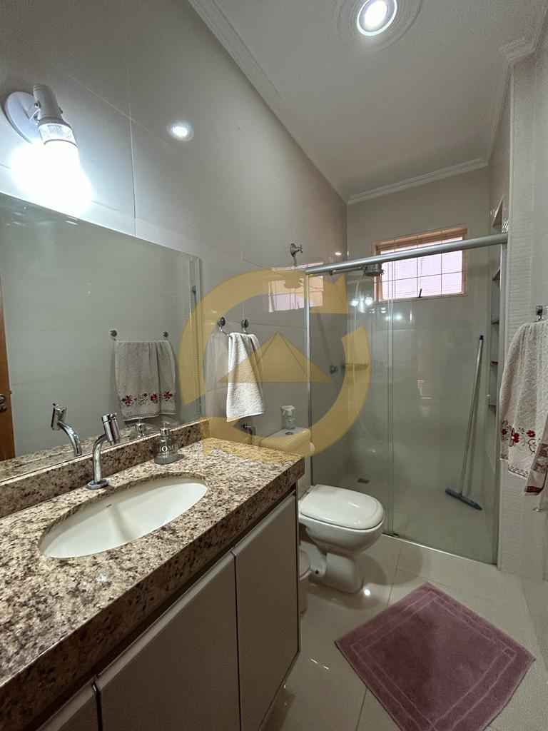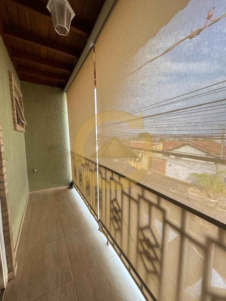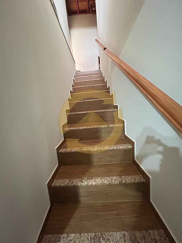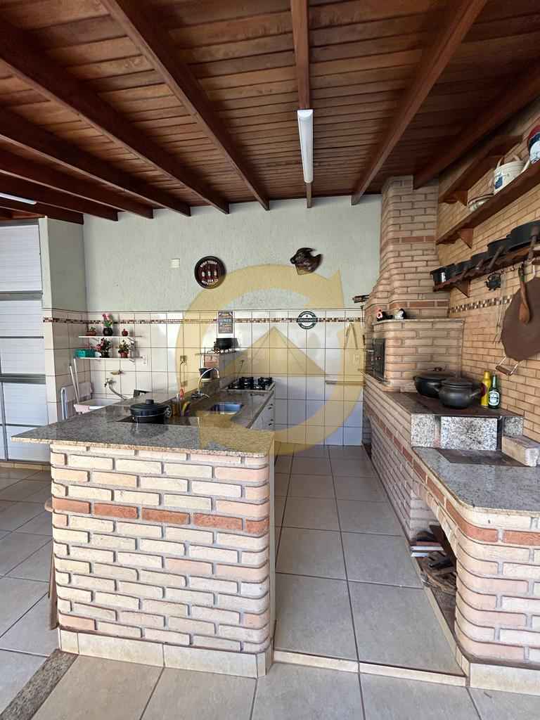 Sobrado: 03 dormitórios (sendo uma suíte), armários, sala, copa, cozinha c/armários, 02 wc social (sendo 01 externo), sacada, escada, piso frio, lavanderia, quintal, área de churrasco, piscina, garagem 04 vagas e portão eletrônico.